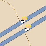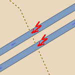 Ugyanez az ikon jelöi, ha két utca úgy keresztezi egymást, hogy nincs közös pontjuk. Ilyenkor általában csak be kell rakni egy közös pontot, de lehet, hogy valójában nincs átjárás, például mert az egyik egy híd.