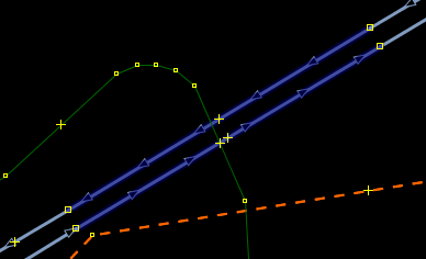 Az új kereszteződés közvetlen közelében időnként megmaradnak további, az eredeti szerkesztő által rajzolt, "tervezett" kapcsolódási pontok.